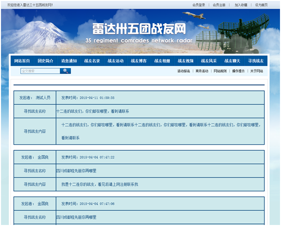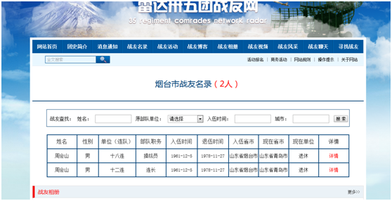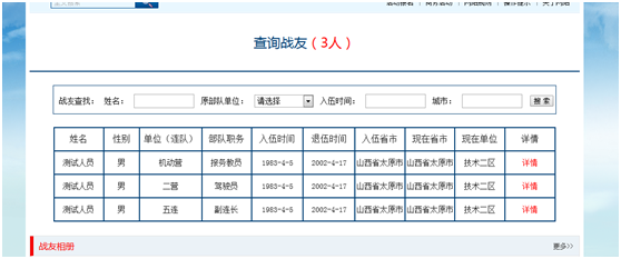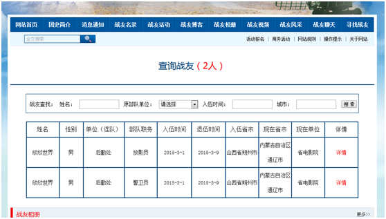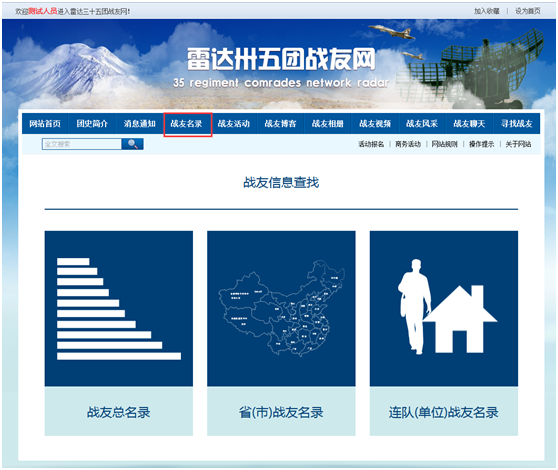点击战友名录,跳转到战友信息查找页面。点击战友总名录,跳转到战友总名录页面