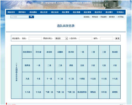 点击连队(单位)战友名录,跳转到连队战友名录页面