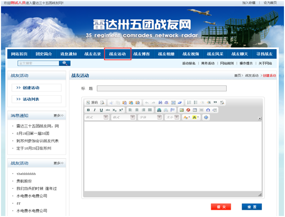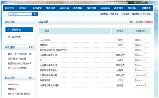 战友博客,战友相册,战友视频,商务活动操作流程和战友活动基本相同。